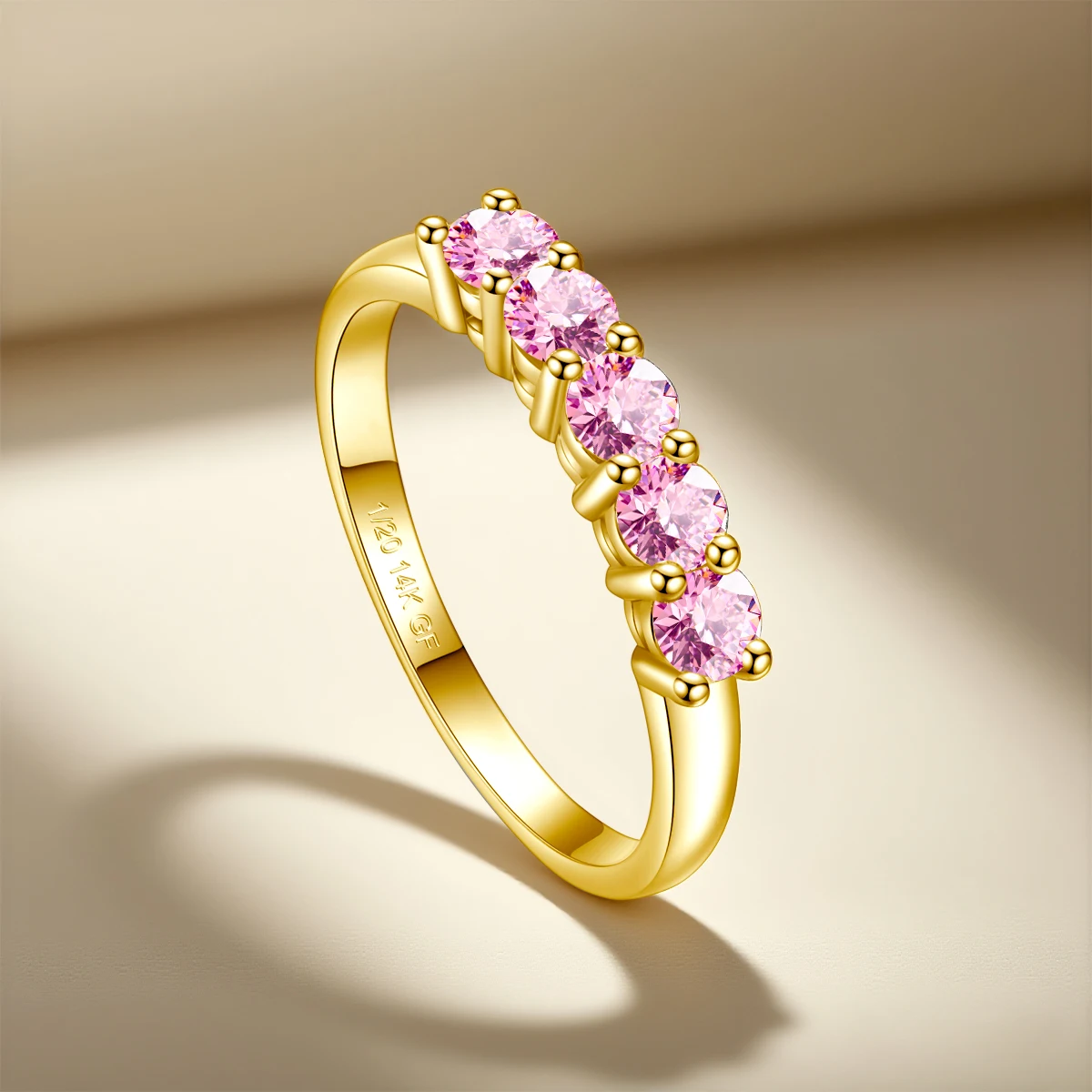 Real 14K Gold Filled Stacking Ring Five Stone Moissanite Wedding Band Finger Jewelry Accessories Anti fading Waterproof